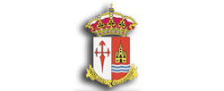 | Escudo de armas de Aranjuez. Escudo partido: primero de plata, cruz de Santiago de gules; segundo de gules, río de plata y azur, surmontado de palacio de oro. |