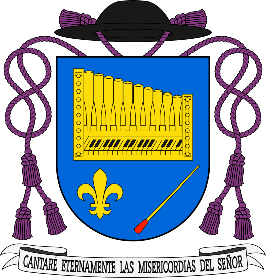 El escudo va acompañado de un lema: CANTARÉ ETERNAMENTE LAS MISERICORDIAS DEL SEÑOR. Texto que aparece en el salmo 88.